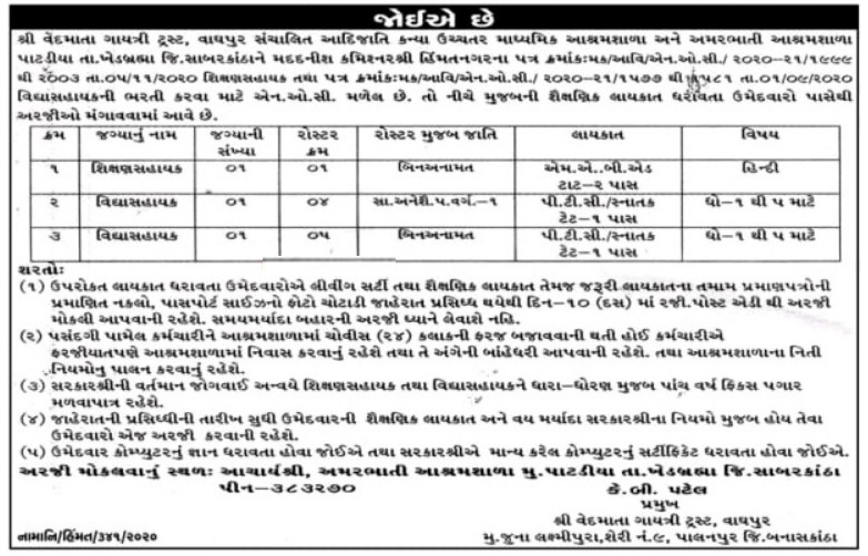 Amarbhati Ashram Shala Recruitment for Shikshan Sahayak & Vidyasahayak Post 2020