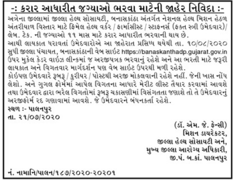 District Health Society, Palanpur Recruitment for Various Posts 2020