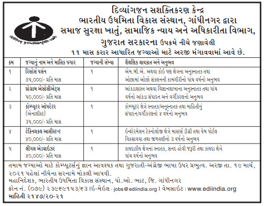 Entrepreneurship Development Institute of India (EDII) Recruitment for Various Posts 2021