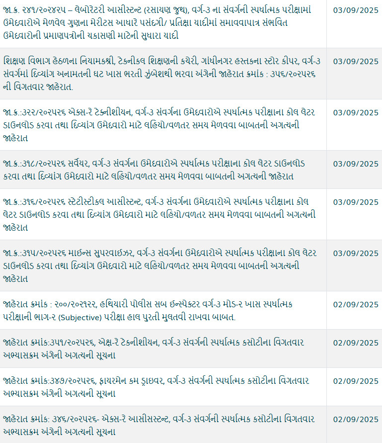 Gujarat Gaun Seva Pasandgi Mandal (GSSSB) Updates on 05-09-2025