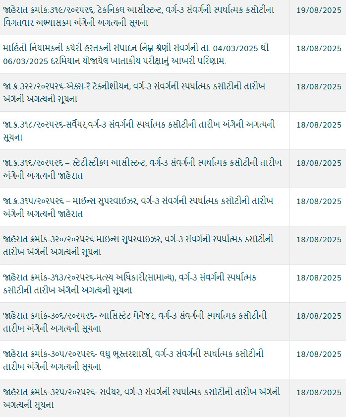 Gujarat Gaun Seva Pasandgi Mandal (GSSSB) Updates on 19-08-2025