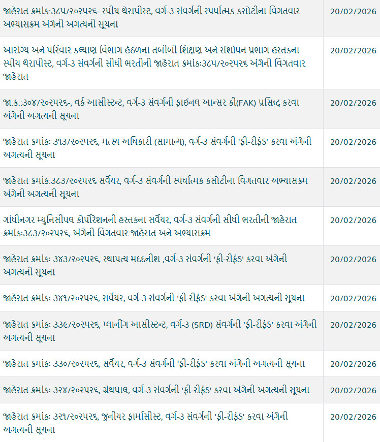 Gujarat Gaun Seva Pasandgi Mandal (GSSSB) Updates on 21-02-2026