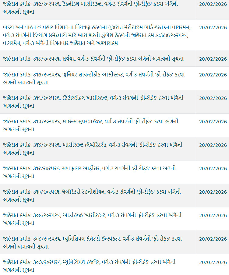 GSSSB Updates on 21-02-2026: Click Here