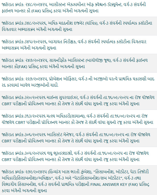 GSSSB Updates on 22-09-2025: Click Here