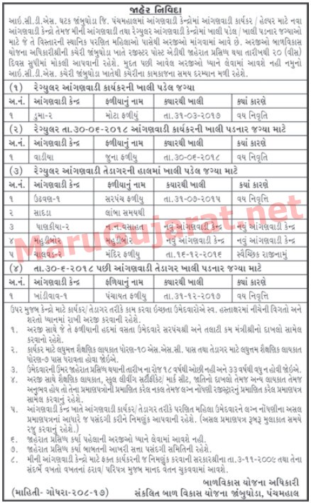 Integrated Child Development Scheme (ICDS) Jambughoda Recruitment for Anganwadi Worker & Helper Posts 2017