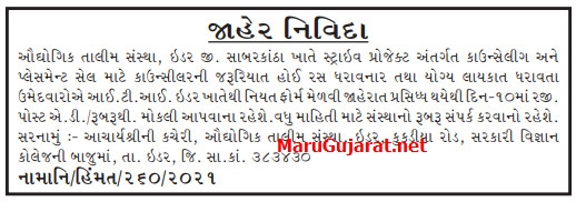 Industrial Training Institute (ITI) Ider Recruitment for Counsellor Posts 2021