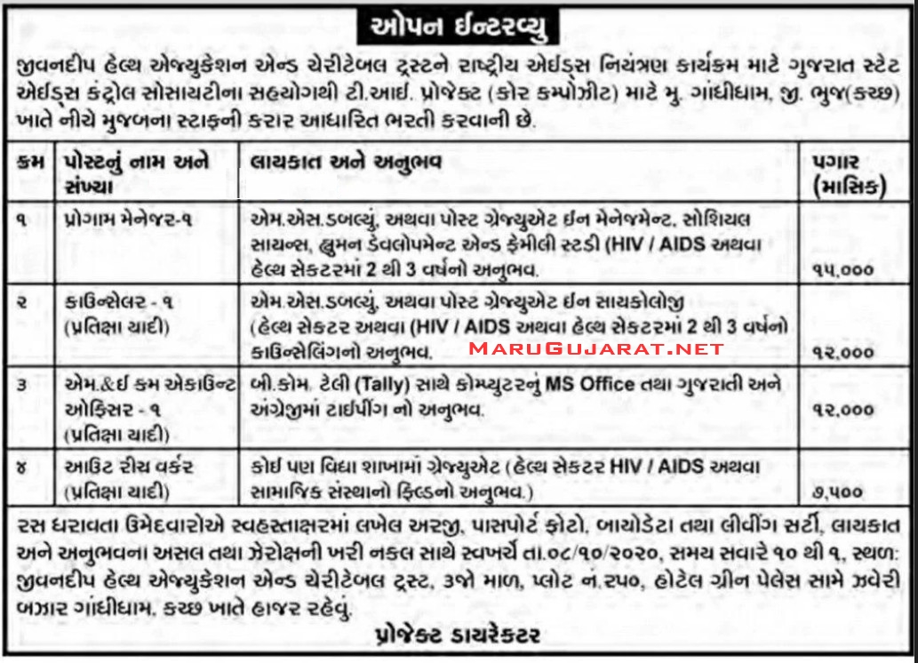 Jivandip Health Education and Charity Trust, Kutch Recruitment for Various Posts 2020