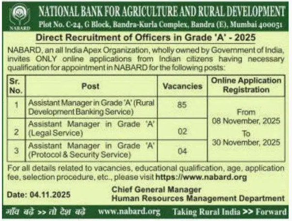 NABARD Grade A Recruitment 2025 Apply Online for 91 Assistant Manager Posts